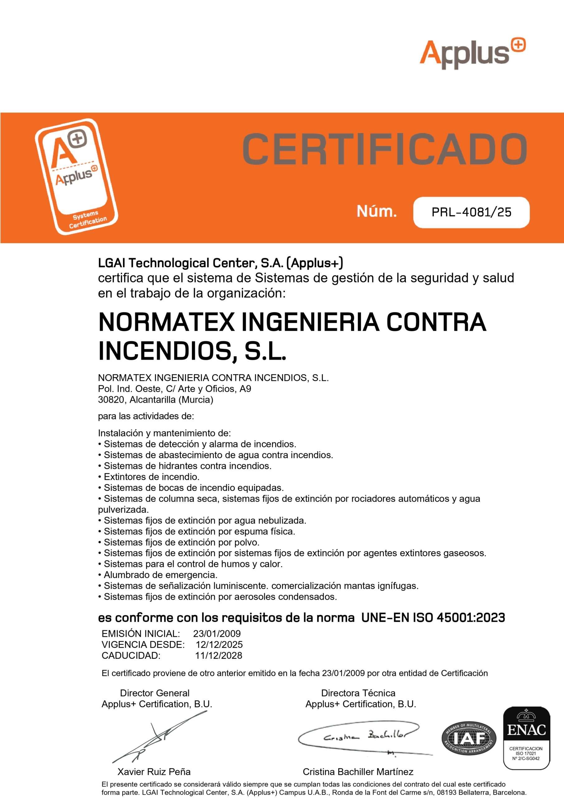 El titular de este sitio web es NORMATEX Ingeniería Contra Incendios, S.L.